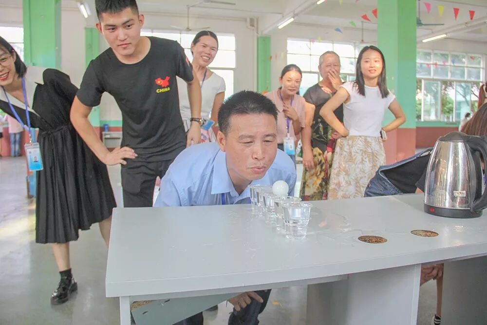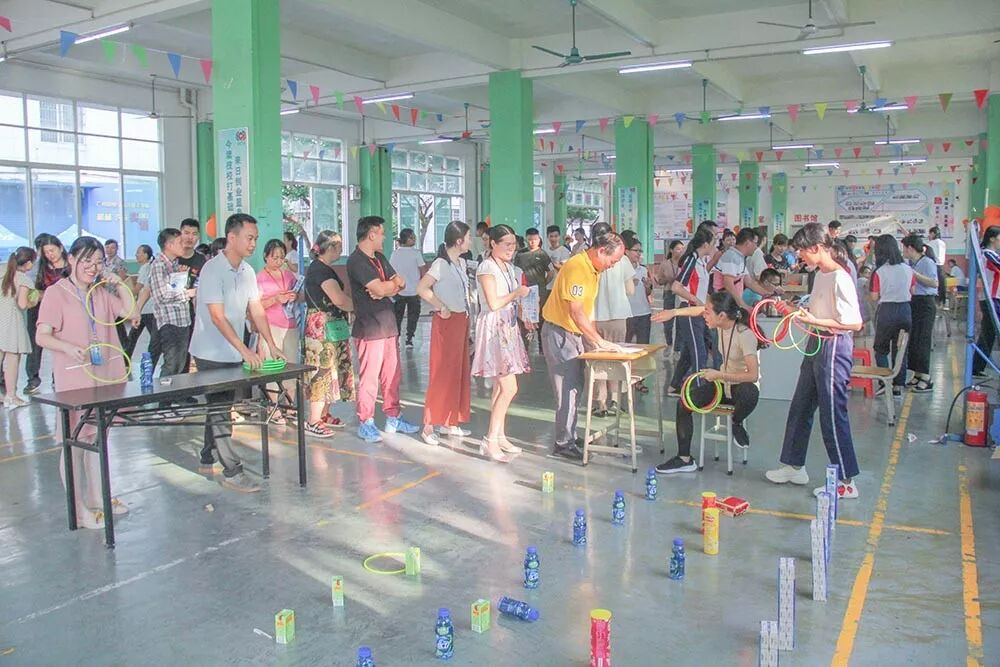 活动由基础部的陈家勇老师带领全体教职工跳激动人心的街舞拉开序幕。然后开始玩游戏环节:套圈 ,吹乒乓球 ,猜谜语等。